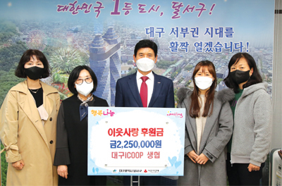 대구 아이쿱 소비자생활협동조합은 지난 25일(금) 관내 어려운 청소년들에게 지원해달라며 후원금 225만 원을 달서구에 기탁했다.