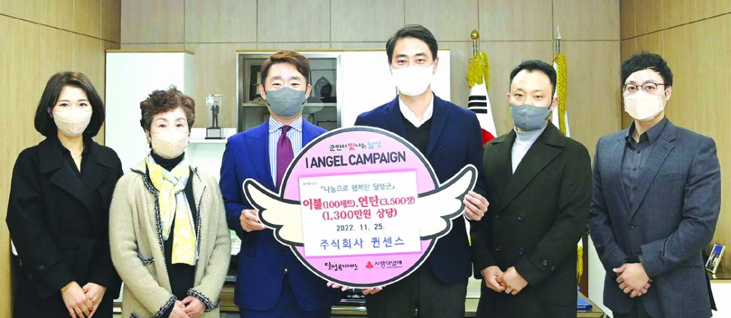 (주)퀸센스(대표 석재민)는 지난 25일(금) 다가올 동절기 취약층에 전달해 달라며 극세사 이불 100세트 및 연탄 3,500장(1,300만 원 상당)을 달성군에 기탁했다.