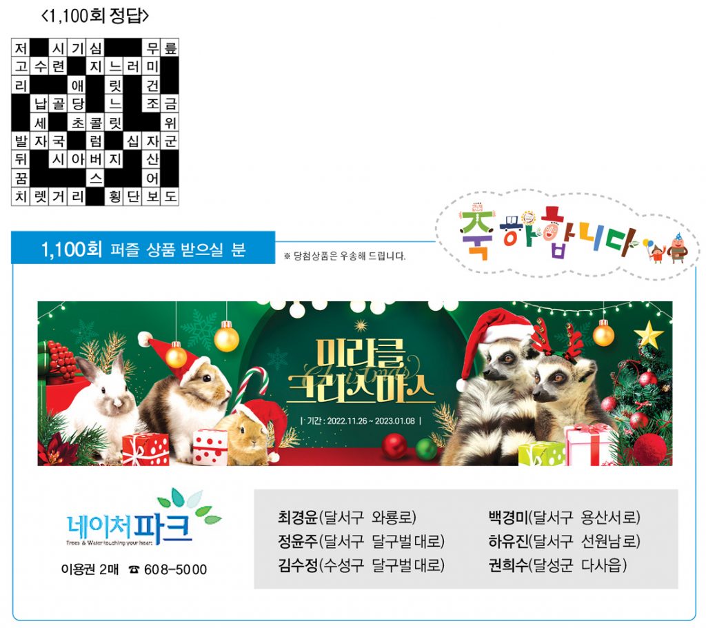 ♣ ‘가족과 함께 풀어보세요’정답을 아시는 분은 본사 편집부로 보내주시기 바랍니다. 12월 20일까지 도착된 엽서 중에서 추첨을 통해 상품을 드립니다. 주소를 정확히 기재해 주십시오. 당첨상품을 우송해 드립니다.