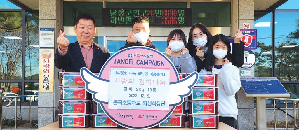 하빈면 소재 동곡초등학교(교장 남지윤)는 지난 5일(월) 하빈면 행정복지센터를 방문해 지역 내 어려운 이웃들에게 전달해 달라며 학생들이 직접 담근 김치 19통을 기탁했다.