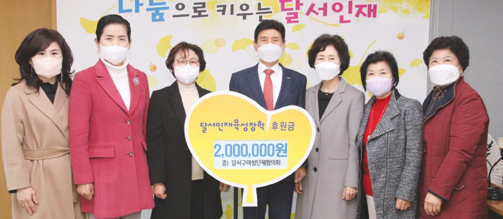 달서구여성단체협의회(회장 최영순)는 지난 14일(수) 지역 인재 육성을 위해 써달라며 200만 원의 후원금을 달서인재육성장학재단에 전달했다.