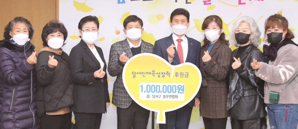 달서구 통우연합회(회장 김기하)는 지난 13일(화) 지역 인재 육성을 위해 써달라며 100만 원의 후원금을 달서인재육성장학재단에 전달했다.