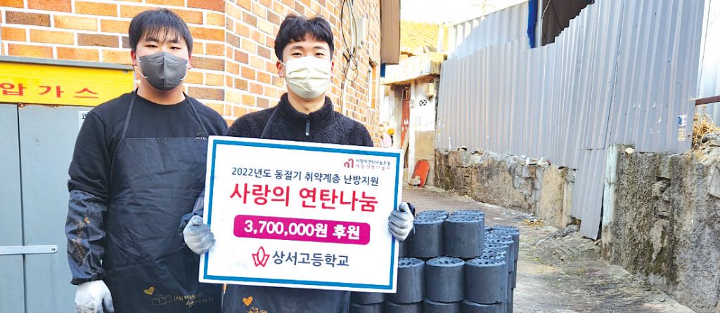 상서고등학교(교장 최우환)는 지난 17일(토) (사)사랑의연탄나눔운동을 통해 서구 지역 주민을 돕기 위한 성금 전달 및 봉사활동을 실시했다.