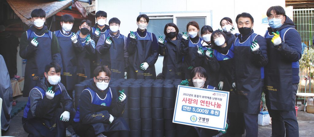 구병원(원장 구자일) 봉사단이 지난 15일(목) 비산동 쪽방 주민들의 따뜻한 겨울나기를 위한 연말연시 사랑의 연탄나눔행사에 참가해 연탄 5,000장을 지원했다. <자료제공:구병원>
