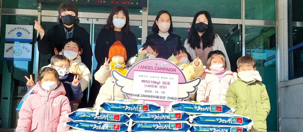 다사읍 다사동그라미어린이집(원장 전혜금) 원아 일동이 지난 19일(월) 어린이집 아나바다 행사로 마련한 백미 10㎏ 50포(140만 원 상당)를 다사읍 행정복지센터에 기탁했다.