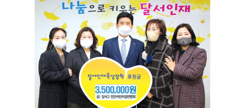 달서구민간어린이집연합회(회장 이정미)는 지난 26일(월) 지역인재 육성을 위해 써달라며 350만 원의 후원금을 달서인재육성장학재단에 전달했다.