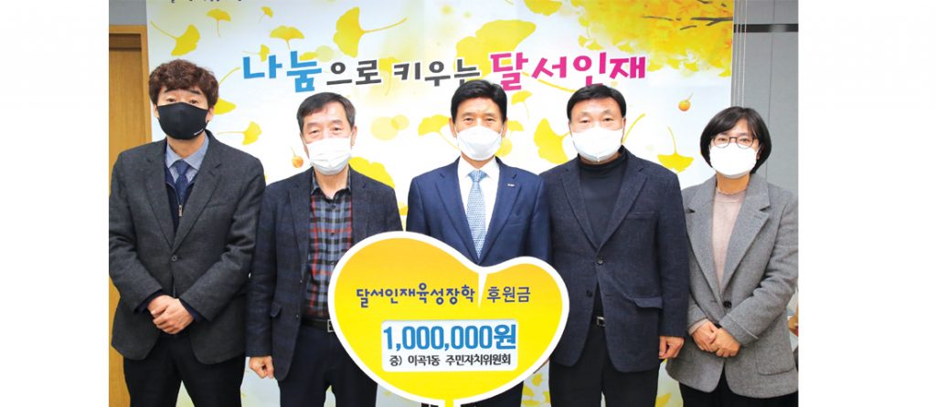 이곡1동주민자치위원회(위원장 진홍선)는 지난 22일(목) 지역인재 육성을 위해 써달라며 100만 원의 후원금을 달서인재육성장학재단에 전달했다.