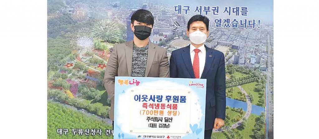 주식회사 달산(대표 김경남)은 지난 23일(금) 냉동식품 1,000개(700만 원 상당)를 달서구에 기탁했다.
