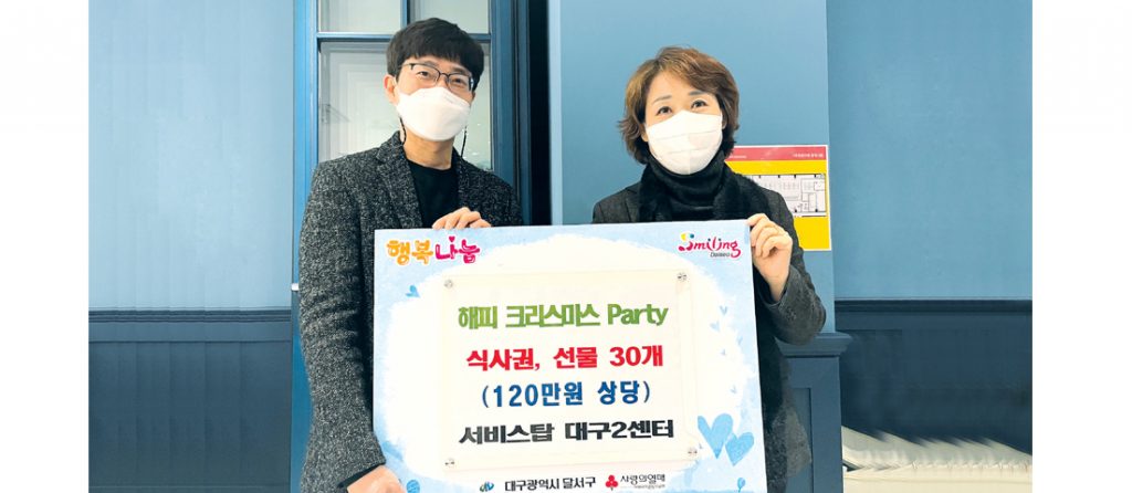 서비스탑 대구2센터(센터장 조준영)는 지난 21일(수) ESG경영실천에 발맞춰 지역아동센터 아동 30명을 초대해 코시스(월성점)에서 ‘함께해서 따뜻한 해피 크리스마스 Party’를 열었다.