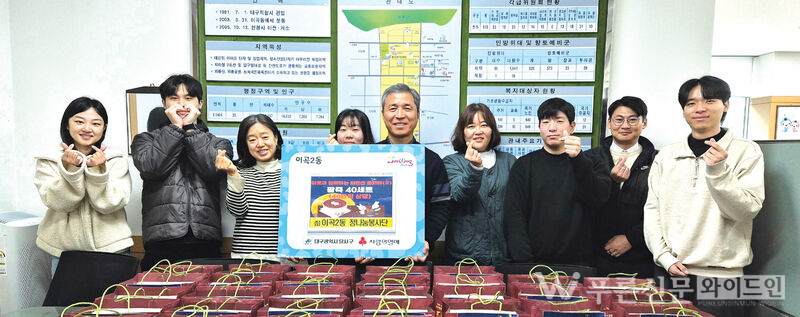 내일교회(담임목사 이관형)는 지난 21일(수) 따뜻한 겨울을 위한 희망상자 100개(1,300만 원 상당)를 달서구에 기탁했다.