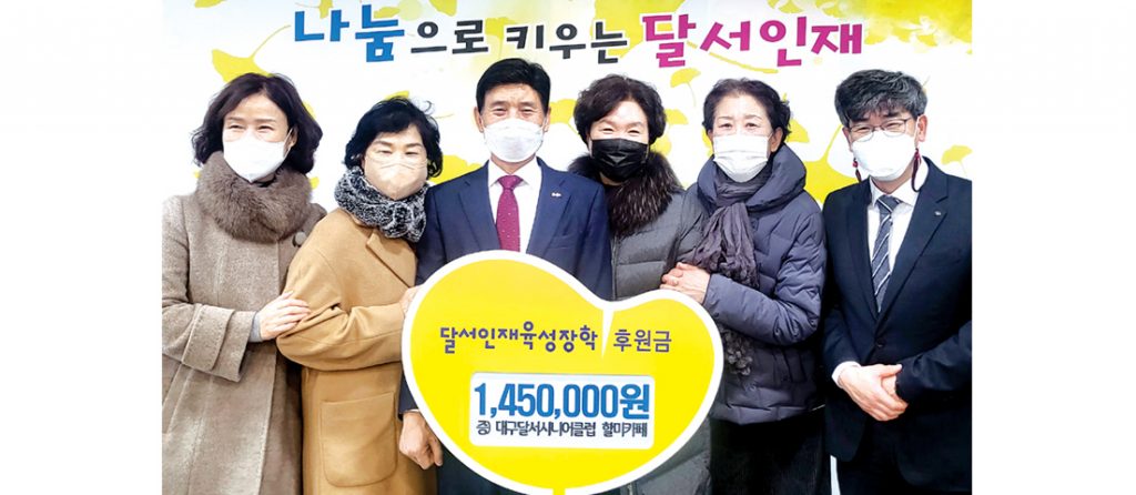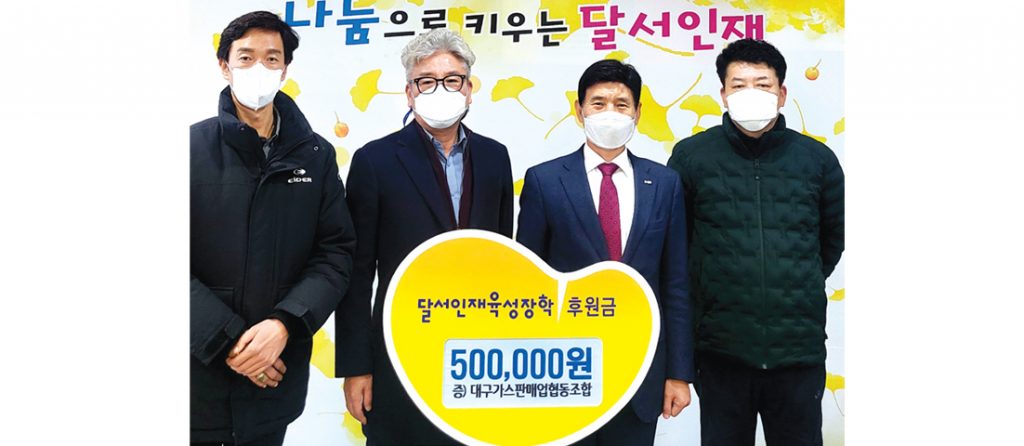 ㈜성운건설, 장보고식자재마트, 달서시니어클럽 카페수아, 대구가스판매업협동조합은 지난해 12월 30일(금) 성운건설㈜ 1,000만 원, 장보고식자재마트 300만 원, 달서시니어클럽 카페수아(노인일자리 참여 어르신) 145만 원, 대구가스판매업협동조합 50만 원의 후원금을 달서인재육성장학재단에 전달했다.