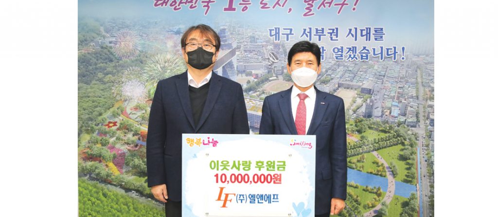 ㈜엘엔에프(대표 최수안)는 지난해 12월 28일(수) 이웃사랑 후원금 1,000만 원을 달서구에 기탁했다.