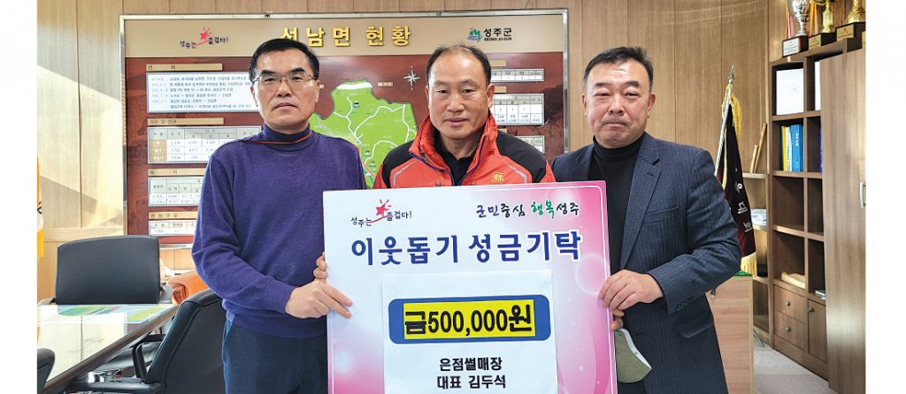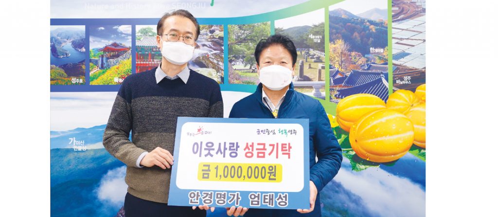 성주읍 안경명가(대표 엄태성)는 지난해 12월 29일(목) 성주군청을 방문해 성금 100만 원을 기탁했다.