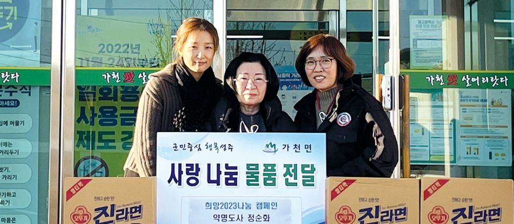 가천면 금강산 약명사는 지난해 12월 27일(화) 성금 60만 원과 라면 15박스(40만 원 상당)를 가천면행정복지센터에 기탁했다.