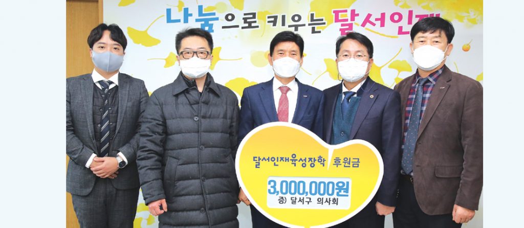 달서구의사회(회장 서영진)는 지난 6일(금) 지역 인재육성을 위해 써달라며 (재)달서인재육성장학재단에 후원금 300만 원을 전달했다.