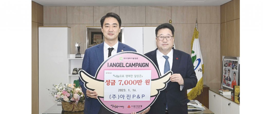 (주)아진P&P(대표 정연욱, 김진두)는 지난 16일(월) 성금 7,000만 원을 기탁했다.