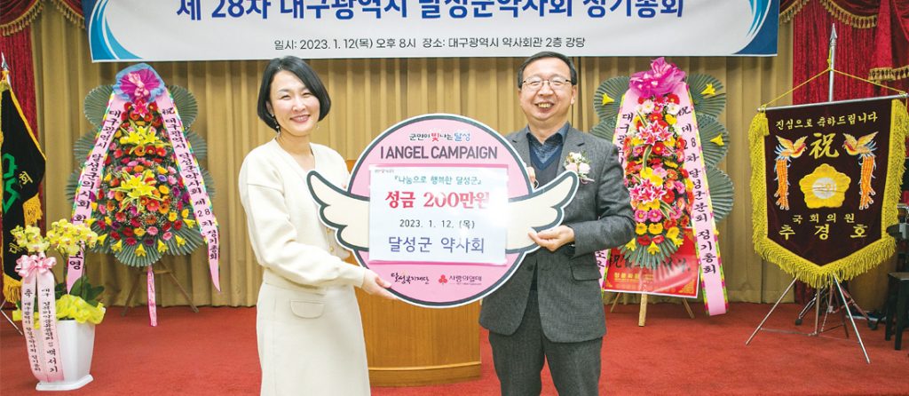 달성군약사회가 지난 12일(목) 대구시 약사 회관에서 열린 정기총회에서 지역 저소득계층을 위해 이웃돕기 성금 200만 원을 달성군에 기탁했다.