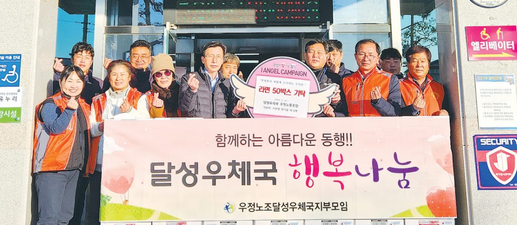 달성우체국 우정노동조합이 지난 16일(월) 구지면 행정복지센터를 방문해 라면 50박스를 전달했다.