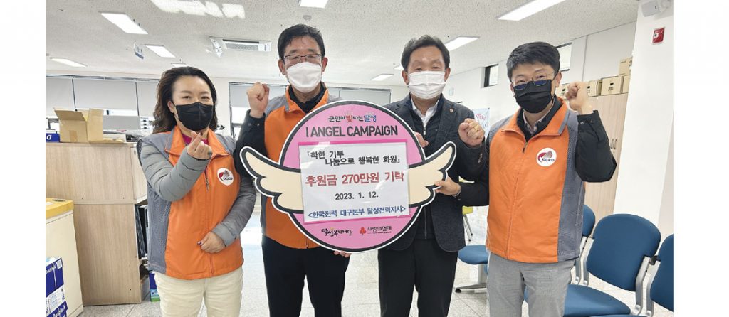 한국전력공사 대구본부 달성전력지사(지사장 이상진)는 지난 12일(목) 화원읍 행정복지센터(읍장 정지성)를 방문해 성금 270만 원을 후원했다.