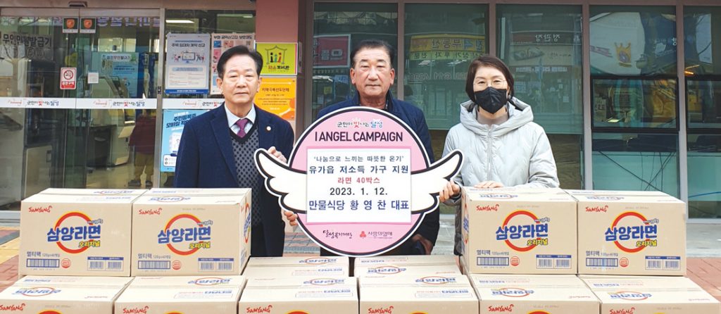 유가읍 지역사회보장협의체 위원장인 황영찬(만물식당 대표) 씨가 지난 12일(목) 라면 40박스를 유가읍에 기부했다.