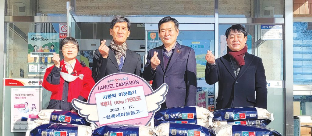 현풍새마을금고(이사장 황태근)는 지난 17일(화) 2022년 한해 사랑의 좀도리 운동을 통해 십시일반 모은 성금으로 백미10㎏ 160포(336만 원 상당)를 구입해 관내 어려운 이웃의 따뜻한 새해맞이를 위해 써달라며 현풍읍(읍장 나호영)에 기탁했다.
