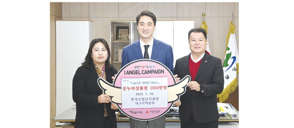 한국산업단지공단 대구지역본부(본부장 김종운)은 지난 10일(화) 온누리상품권 100만 원을 달성군에 기탁했다.