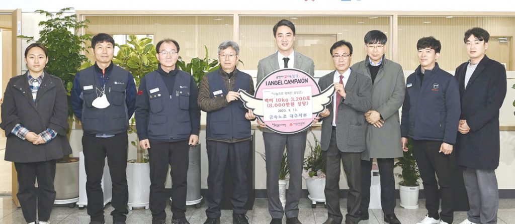 금속노조 대구지부(지부장 박용선)는 지난 13일(금) 어려운 이웃에게 전달해 달라며 백미 10kg 3,200포(8,000만 원 상당)을 달성군에 기탁했다.