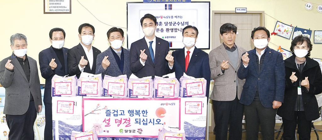 달성군(군수 최재훈)은 민족고유의 명절인 설을 맞아 1월 16일~20일 노인·장애인 생활시설과 지역아동센터, 저소득 보훈가족 및 소외계층 등 지역의 어려운 이웃에 대한 위문을 실시했다.