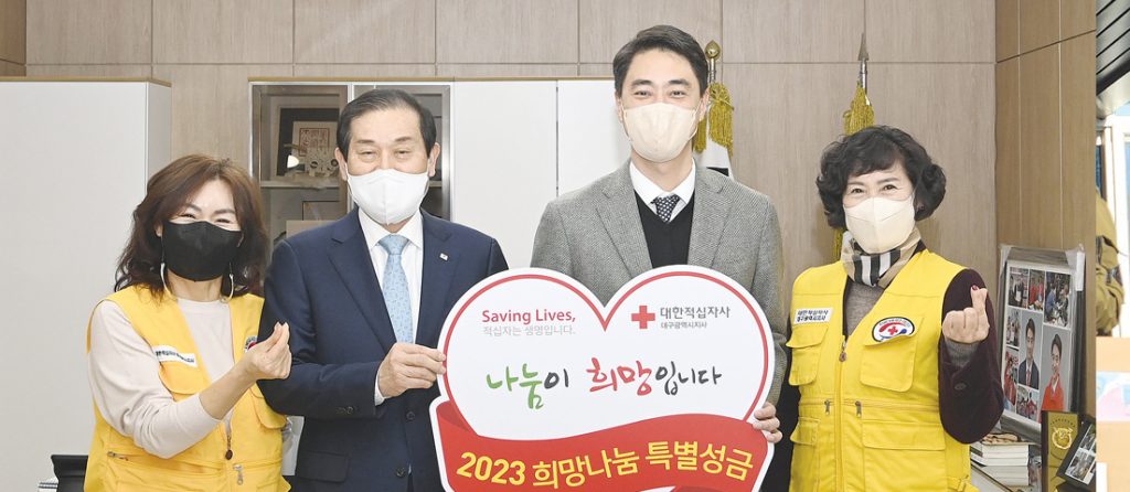 달성군(군수 최재훈)은 지난달 19일(목) 적십자 모금운동에 대한 군민 참여 분위기를 조성하고자 대한적십자사 대구지사에 ‘2023년도 적십자 희망 나눔 특별성금’ 100만 원을 전달했다.