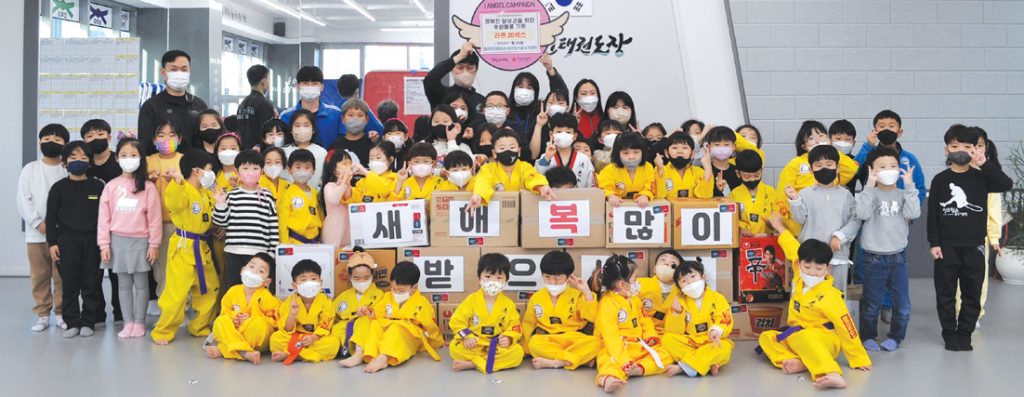 챔피언태권도장&점프윙스줄넘기클럽 명곡점과 옥포점은 지난달 20일(금) 관내 저소득 이웃을 위해 아이들과 함께 준비한 라면 20박스를 달성복지재단(이사장 강성환)에 기탁했다.