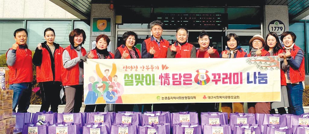 논공읍지역사회보장협의체(공공위원장 김봉식, 민간위원장 이안아)는 훈훈한 설 명절과 나눔 문화 확산을 위해 지난달 18일(수)~24일(화)까지 ‘설명절 정담은 복 꾸러미 나눔 사업’을 펼친다.