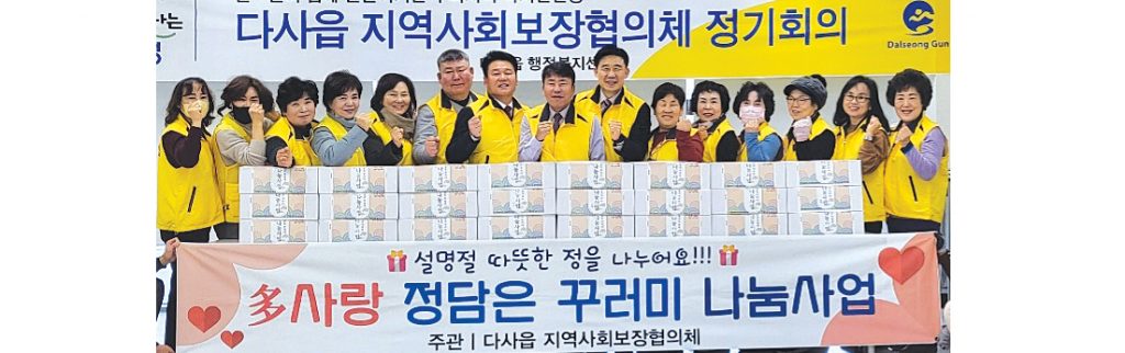 다사읍 지역사회보장협의체(공공위원장 표준식, 민간위원장 정무상)는 지난달 17일(화) 다가오는 설 명절을 맞아 관내 독거노인 및 장애인 가구에 안부를 확인하며 떡국 재료 꾸러미를 전달하는‘多사랑 정담은 꾸러미 나눔 사업’을 진행했다.