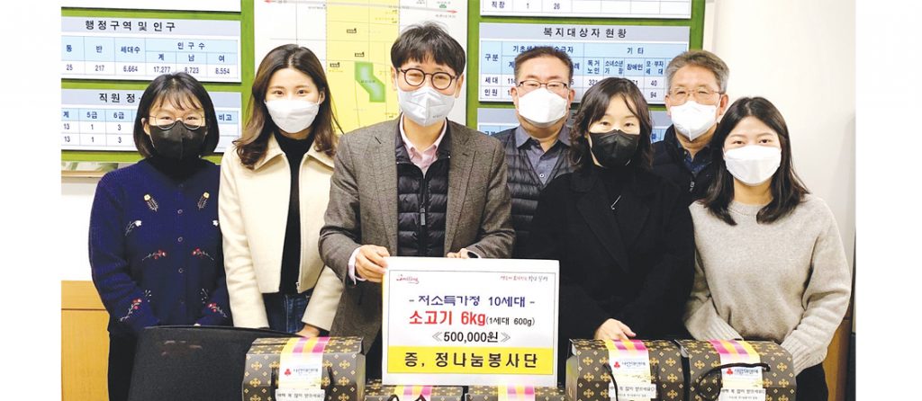 이곡2동 정나눔봉사단(단장 심태희)은 지난달 17(화)~18일(수) 저소득 취약계층 가정에 소고기(50만 원 상당)를 후원했다.