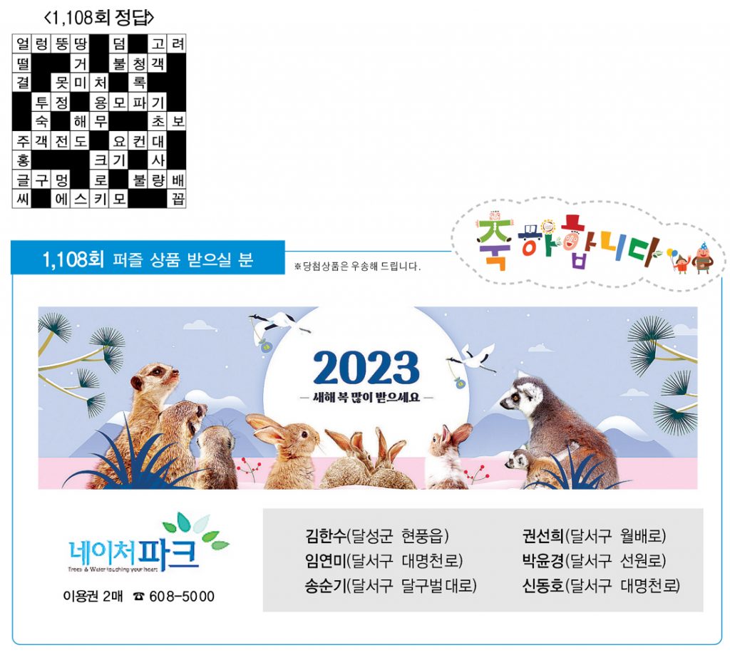 ♣ ‘가족과 함께 풀어보세요’정답을 아시는 분은 본사 편집부로 보내주시기 바랍니다. 2월 21일까지 도착된 엽서 중에서 추첨을 통해 상품을 드립니다. 주소를 정확히 기재해 주십시오. 당첨상품을 우송해 드립니다.