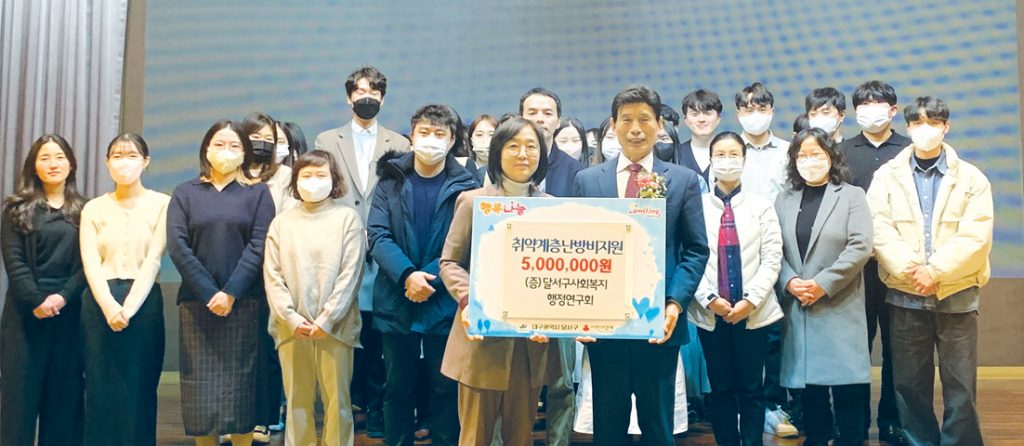 달서구사회복지행정연구회(회장 이선미)는 지난 1일(수) 취약계층 난방비 지원을 위해 후원금 500만 원을 전달했다.