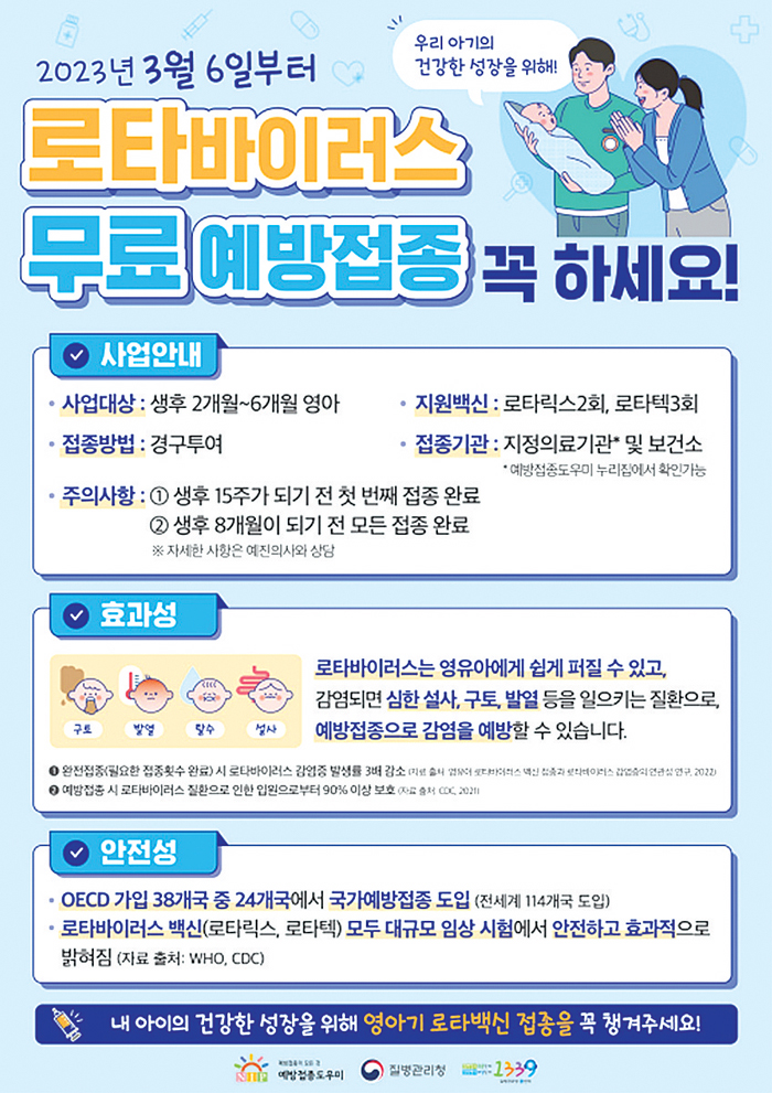 영유아 대상 로타바이러스 무료 예방접종 가능