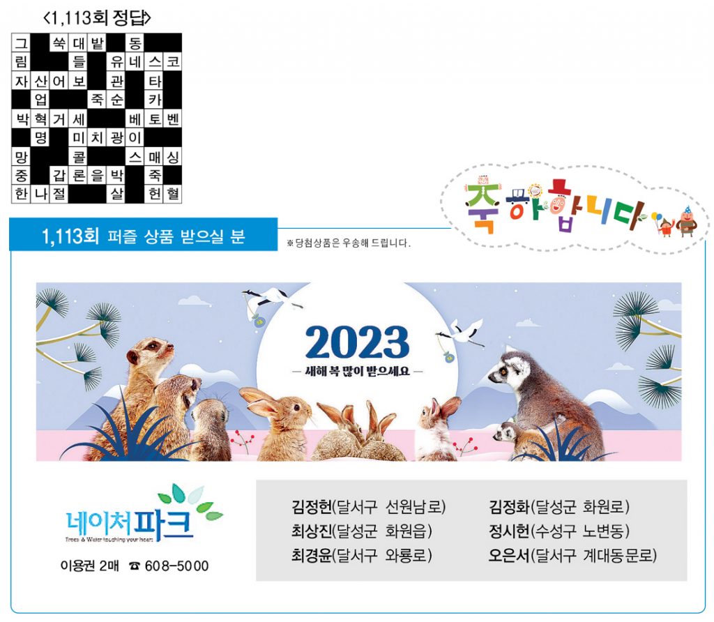 ♣ ‘가족과 함께 풀어보세요’정답을 아시는 분은 본사 편집부로 보내주시기 바랍니다. 3월 28일까지 도착된 엽서 중에서 추첨을 통해 상품을 드립니다. 주소를 정확히 기재해 주십시오. 당첨상품을 우송해 드립니다.