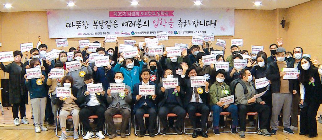 제35기 사랑의 토요학교 입학식이 지난 18일(토) 학생과 학부모 그리고 자원봉사자 등 80여 명이 참석한 가운데 달서구 장애인 복지센터에서 개최됐다. 사랑의 토요학교는 발달장애인의 재활과 자립기반 제공을 위해 1년 단위로 운영되는 프로그램으로 1989년에 시작해 올해로 35회째를 맞이하고 있으며, 매주 토요일마다 미술, 음악, 체육활동, 레크레이션 등 다양한 프로그램 운영으로 재활과 함께 사회적응 훈련을 함께 실시하고 있다.