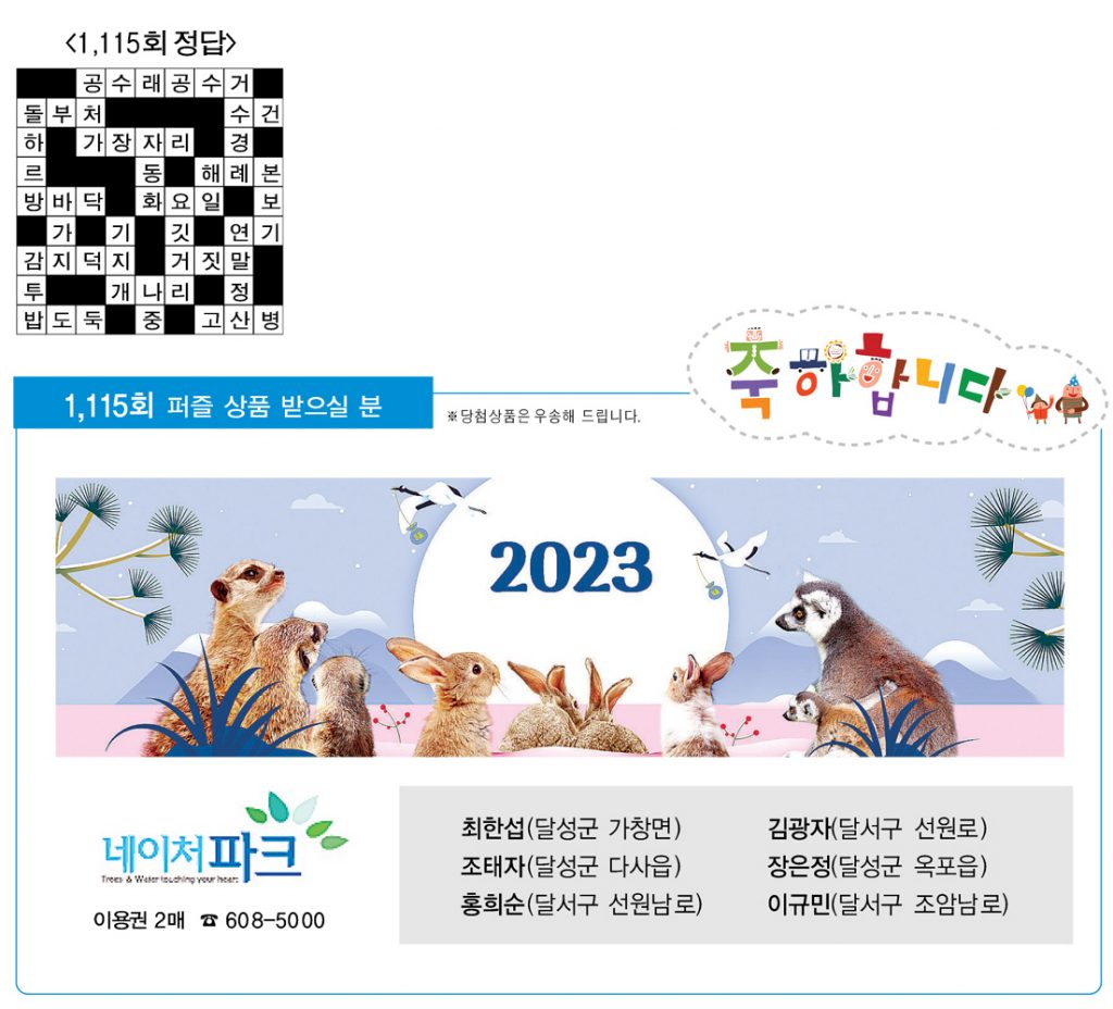 ▶보내실곳:42640 대구광역시 달서구 달구벌대로 323길 13 (감삼동) 3층 푸른신문 편집부 앞 E-mail:pr5726000@naver.com 쮂 응모엽서에 성명과 우편번호를 반드시 적어 주세요.