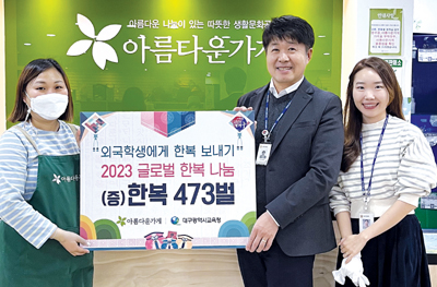 대구시교육청(교육감 강은희)은 외국학생들에게 한복의 아름다움을 홍보하고, 포스트 코로나 시대 국제교류를 활성화하기 위해 ‘2023 글로벌 한복 나눔 사업’을 추진한다.대구시교육청은 글로벌 한복나눔 사업을 2015년부터 시작하여 그간 총 48개국에 3,511벌의 한복을 보냈으며, 해외 학생들에게 한복의 아름다움을 알리고 중국의 신동북공정에 대응해 우리 문화를 알리기 위해 힘써왔다.<자료제공:대구시교육청>
