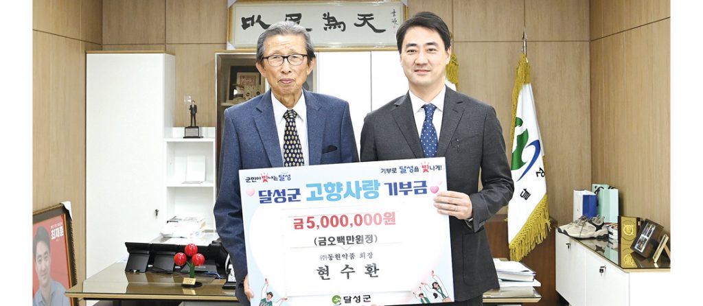 현수환 ㈜동원약품 회장이 지난 7일(금) 달성군청을 방문해 고향사랑기부제 기부 최고액인 500만 원을 기부했다.