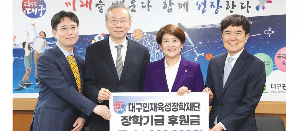 경북대학교 의과대학이 개교 100주년을 기념해 지난 7일(금) 대구인재육성장학재단에 장학금 2,100만 원을 기탁했다.
