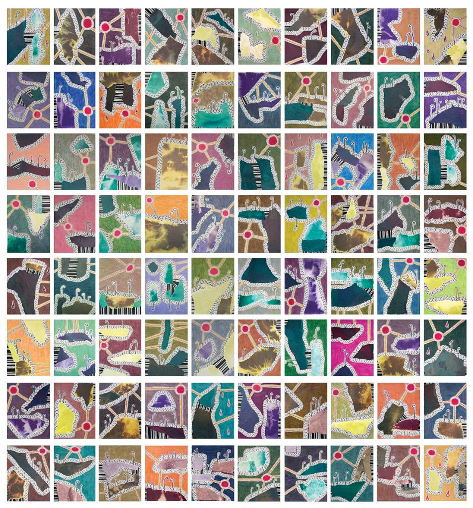 최영지(평면) 작가는 인간을 단순화하여 세포처럼 보이는 점으로 설정하여 그 점들 속에서 일어나는 현상들을 확대하여 종이에 실험하는 작업을 선보인다.