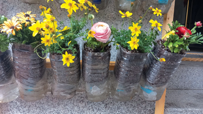 해올고등학교(교장 정재명)는 지난 6일(목)에 수업으로 실천하는 환경 캠페인 ‘식물로 학교 가꾸기’를 진행했다. 대구 유일의 공립대안고등학교로 교육과정의 자율성을 바탕으로 특색있는 수업들을 운영하고 있다. 그 중의 하나가 작은 실천으로 지구 환경을 살리자는 ‘식물로 학교 가꾸기’ 이다. 이 수업은 버려지는 재활용품들을 학생들이 수집해 식물을 가꿀 수 있는 다양한 형태로 재탄생시킨다. 이번에는 생수병을 재활용하여 자동급수 화분을 제작하고 벽면 녹화 수업을 했다.