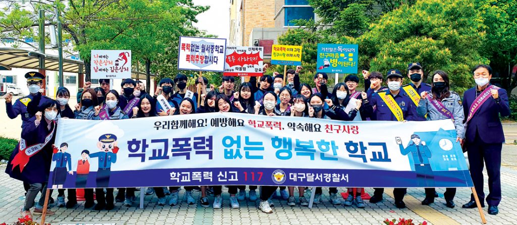 월서중학교(교장 김봉석)는 지난 17일(월)~21일(금)까지 1주간 학생회 주관으로 학생과 교사, 학교전담경찰관, 월배지구대 경찰관 등이 참여해 학교폭력 예방을 위한 ‘2023. 학교폭력 멈춰! 학교폭력 예방 캠페인’을 실시했다.