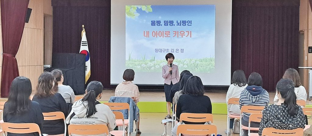 대구포산유치원(원장 박경화)은 자녀가 건강하고 행복하게 자랄 수 있도록 지난 18일(화) 학부모 50여 명을 대상으로 ‘몸짱! 마음짱! 뇌짱!인 내 아이 키우기’라는 주제로 연수를 개최했다.<자료제공:포산유치원>