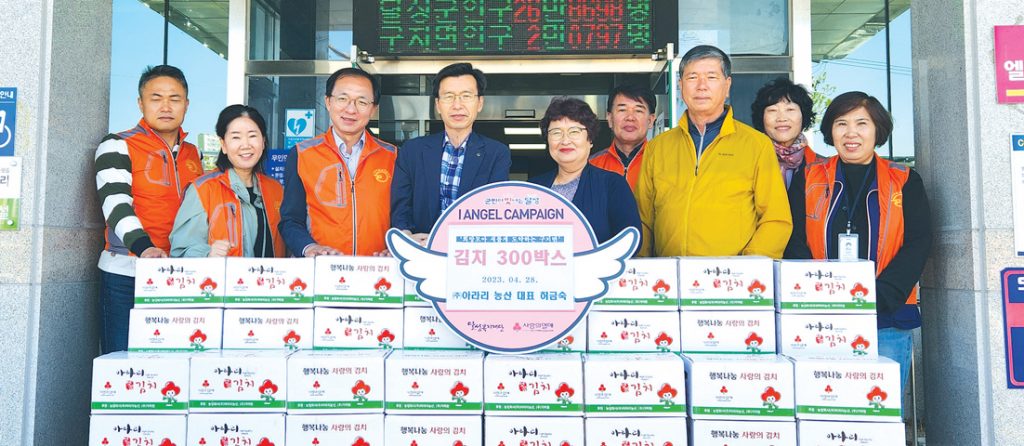 ㈜아라리농산에서 지난 4월 28일(금) 달성군 구지면사무소를 방문해 지역 취약계층에게 전달할 김장김치 300박스를 기탁했다.