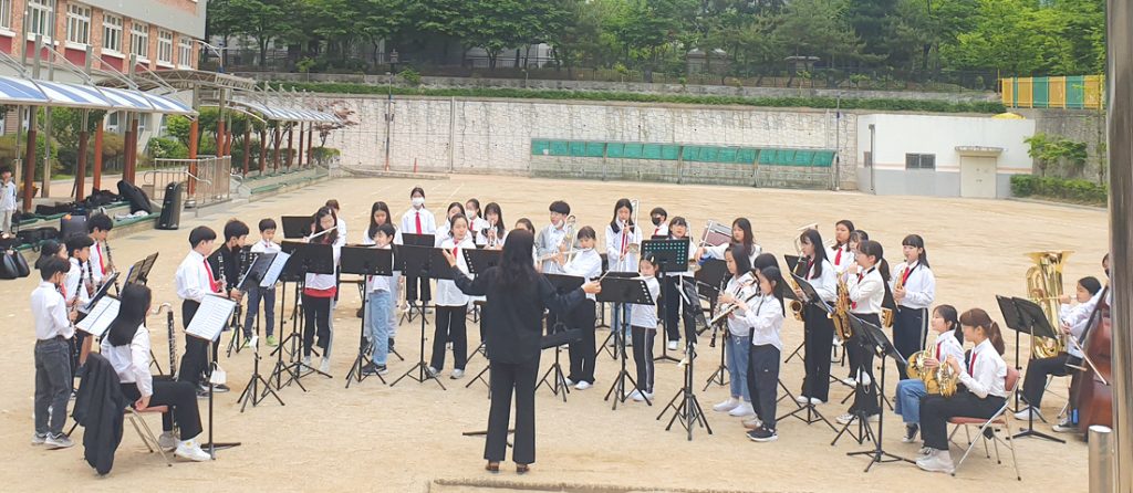 대구유가초등학교(교장 정승록)는 지난 4일(목) 101회 어린이날을 기념해 깜짝 오케스트라 버스킹을 개최했다. 이날 연주를 한 유가윈드오케스트라단은 어린이날 노래를 비롯한 동요와 가요, 클래식 등을 연주하며 등교 학생들을 맞이했다. 등교하며 연주를 들은 학생들은 음악으로 소통과 공감을 하는 즐거운 등교 시간을 가졌다.<자료제공:유가초등학교>