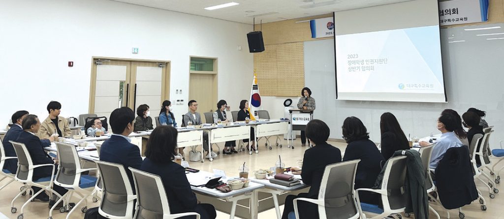 대구시교육청(교육감 강은희)은 지난 2일(화) 대구특수교육원에서 장애학생 인권보호 관련 각 분야 전문가들로 구성된 ‘장애학생 인권지원단 협의회’를 개최했다. ‘장애학생 인권지원단’은 장애학생 인권보호 및 인권침해 예방 등을 위해 학교 현장을 지원하는 기구(대구특수교육원 내)로, 각 분야별 전문가 24명으로 구성됐다. <자료제공:대구시교육청>