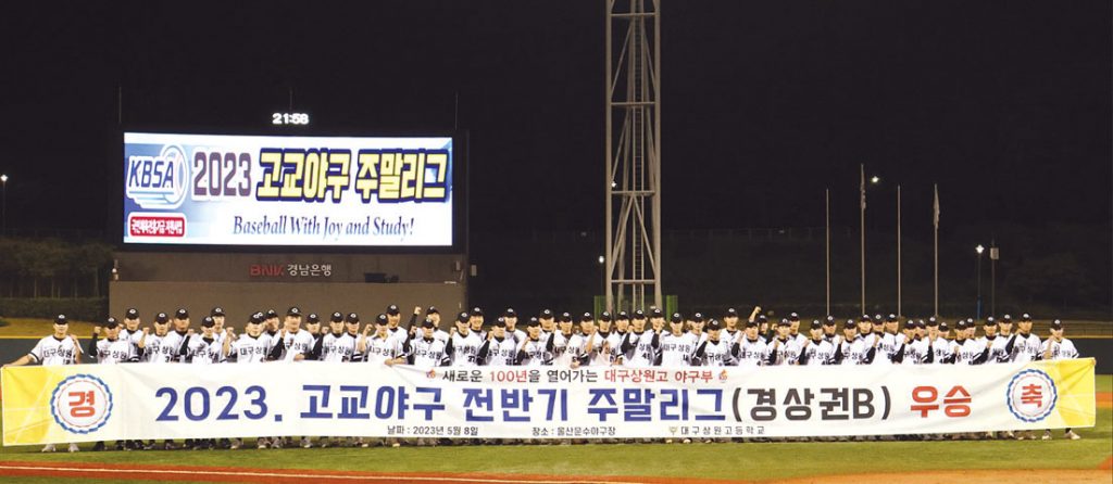 올해 개교 100주년을 맞이한 대구상원고는 이번 ‘고교야구 주말리그’ 우승으로 △전국체육대회 △황금사자기 △청룡기 등 주요 고교 야구대회의 출전권을 확보했다. 대구상원고는 꾸준한 훈련으로 기본기와 체력을 갖추고, 서울·경기·부산 등에서 전국의 강팀들과 전지훈련을 실시하는 등 체계적인 준비 끝에 우승이라는 결실을 맺을 수 있었다.